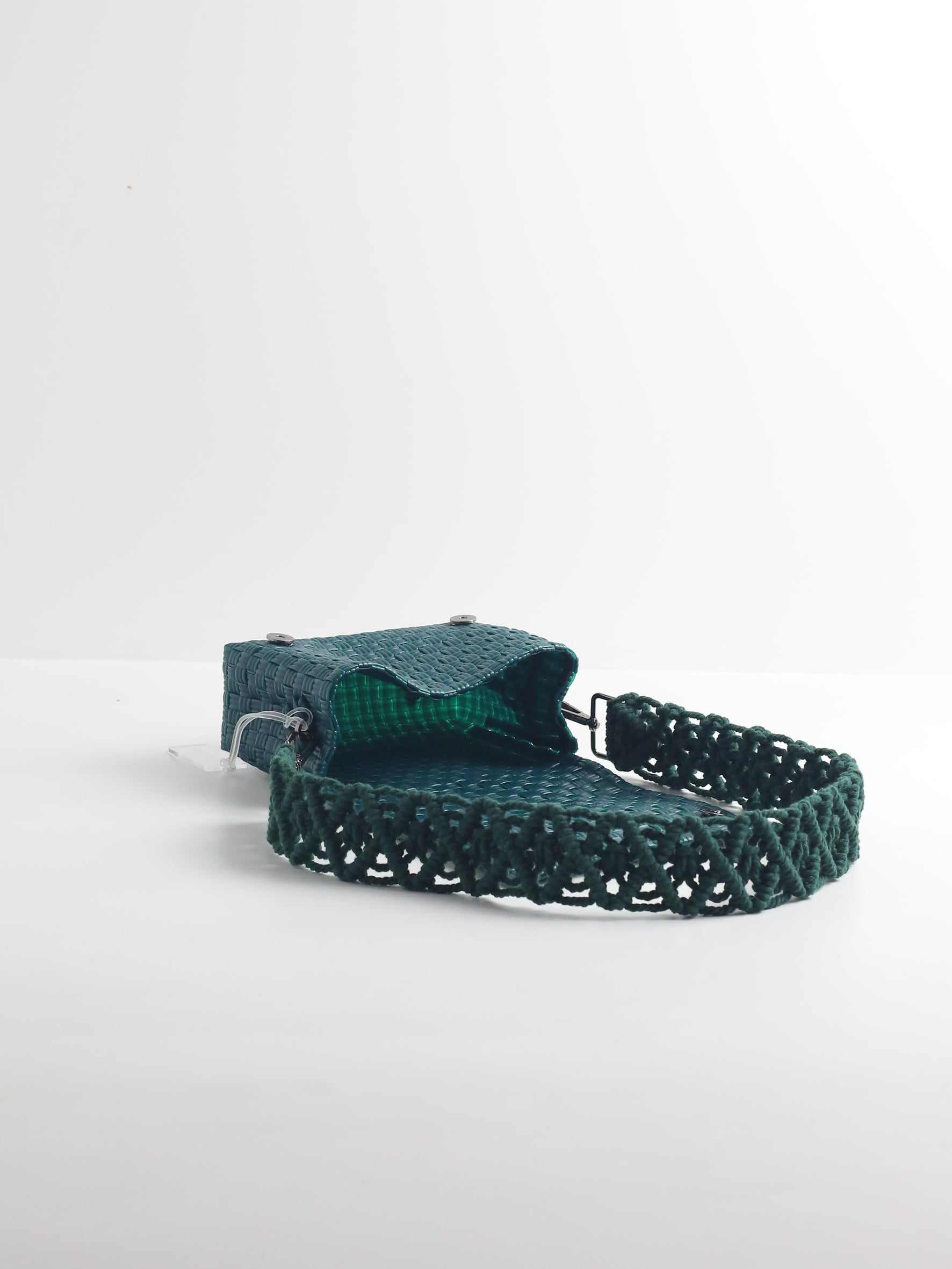 A beautiful, uniquely handwoven bag: Comes with a detachable strap made using the macramé technique. Comes with flap for closure.