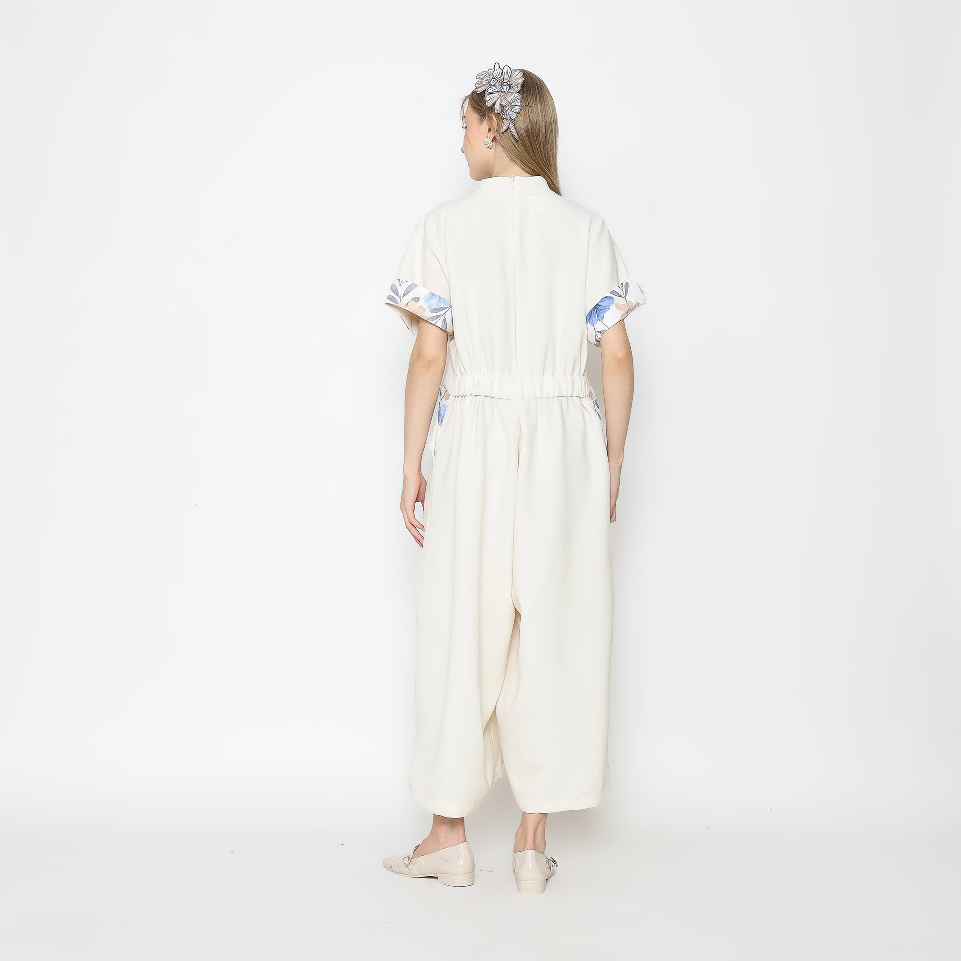 The Myra Jumpsuit- a relaxed-fit, wide-legs with a detachable obi featuring Nona Rona’s signature print. Perfect for any occasion, seamlessly transitioning from formal to casual wear.