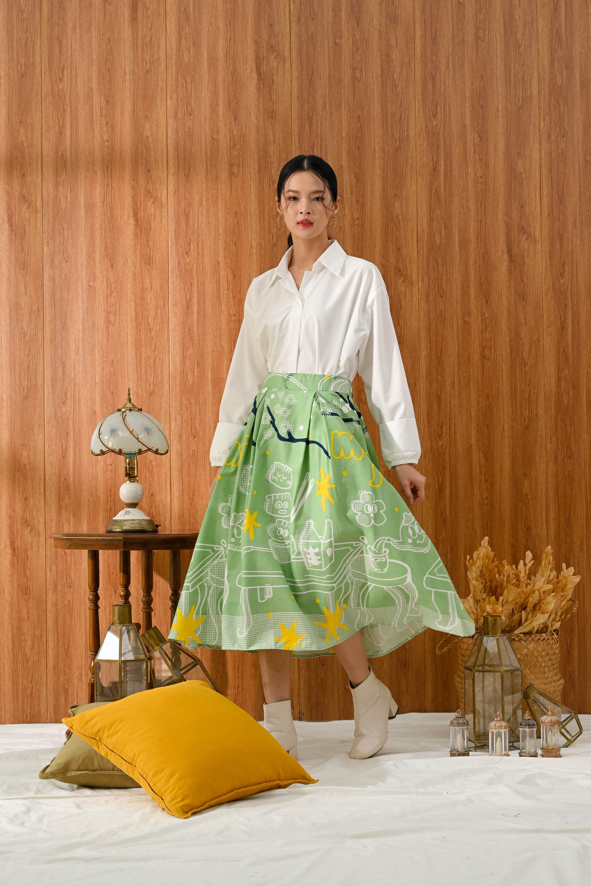 Cette jupe longue est dotée d'une fermeture éclair à gauche et d'une poche à droite. La jupe évasée Leora s'associe parfaitement à un haut court pour une allure élégante et féminine.