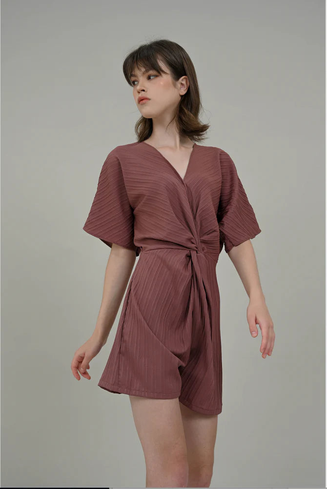 Confectionnée avec soin dans un tissu texturé unique pour une sensation luxueuse, elle présente un design sophistiqué avec un décolleté en V flatteur, un dos épuré et un nœud signature qui cintre la taille. Cette combinaison est parfaite de jour comme de nuit !