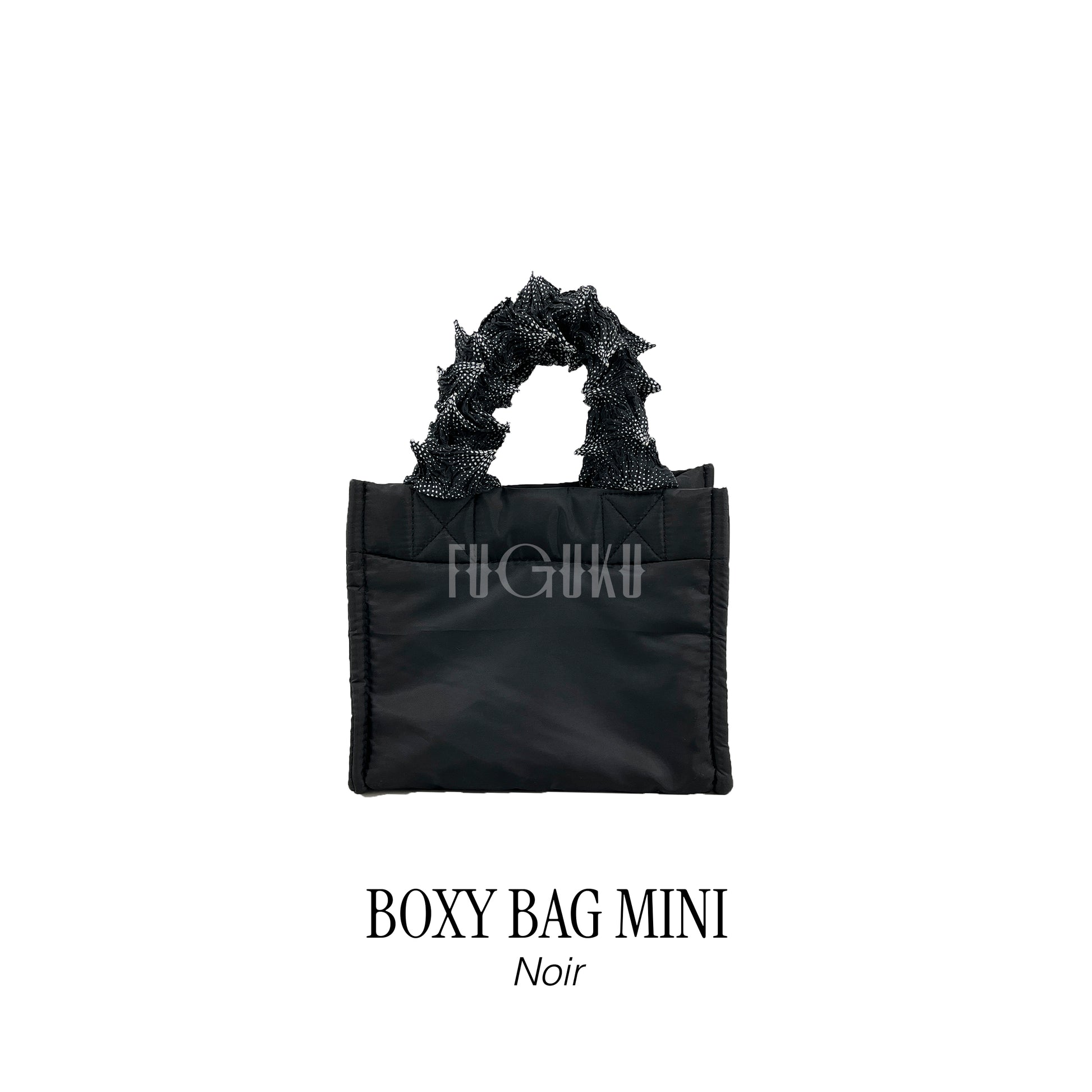 This boxy bag features a striking spiky handle and high functionality, reinforced by a detachable base and internal pockets. Made from recycled plastic fabric, including its signature puffy details, this bag is safe with a magnetic closure.