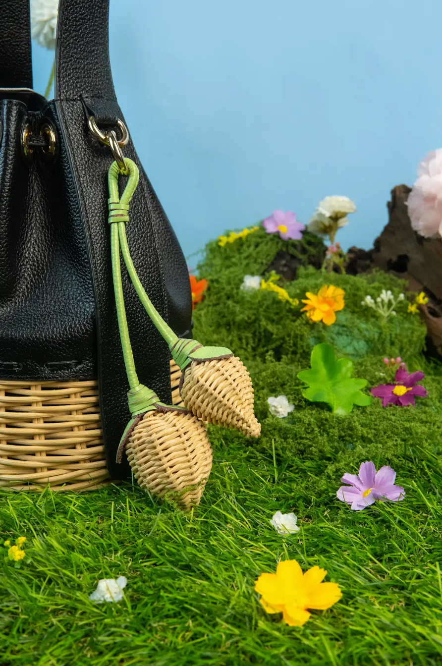 LSS's Rattan Charm Fruit is a testament to our commitment to sustainability and craftsmanship. Made from leftover genuine leather and rattan that is not used in the bag manufacturing process, Rattan Charm Fruit comes in various shapes and is 100% handmade by our local artisans.
