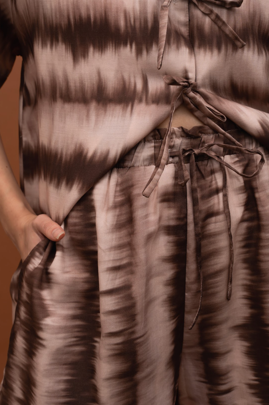 The Palmia Set is a relaxed yet polished co-ord designed for effortless warm-weather dressing. Crafted from breathable Lyco Linen and soft Tencel print, it offers a lightweight feel with natural texture and fluid drape. The short-sleeve shirt features delicate palm-inspired embroidery and a relaxed silhouette, paired with comfortable drawstring shorts for ease of movement. Whether worn together or styled separately, Palmia delivers a refined resort aesthetic with modern versatility.