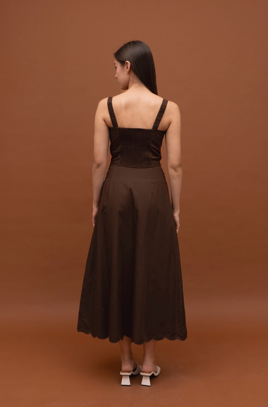 The Palmia Skirt blends feminine elegance with intricate detailing. Made from structured yet breathable cotton poplin, it holds its shape while remaining comfortable throughout the day. The A-line silhouette is enhanced with beautifully cut palm embroidery and scalloped hem detailing, creating soft movement with every step. Perfect for pairing with the matching bralette or a simple blouse, this skirt transitions seamlessly from daytime gatherings to evening occasions.