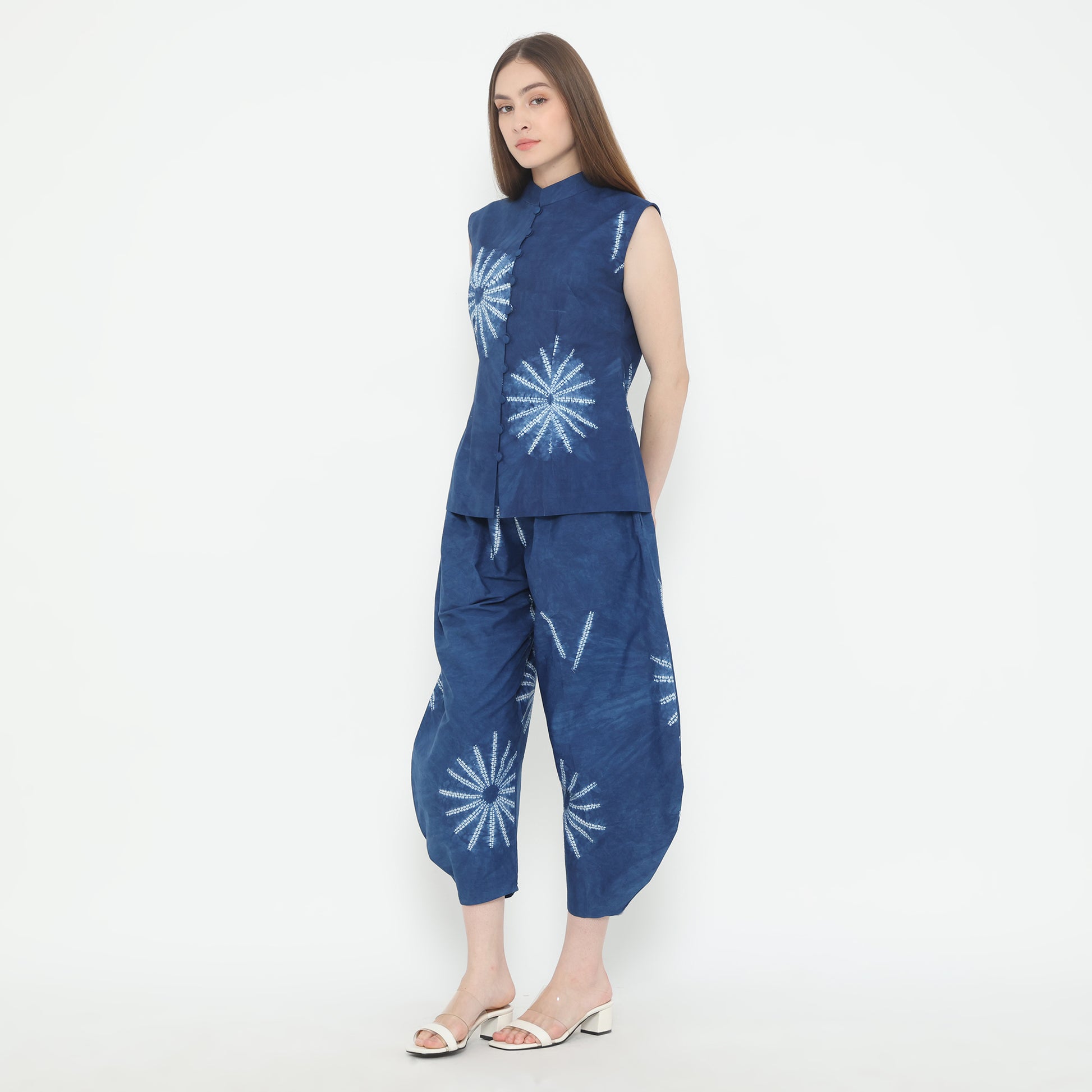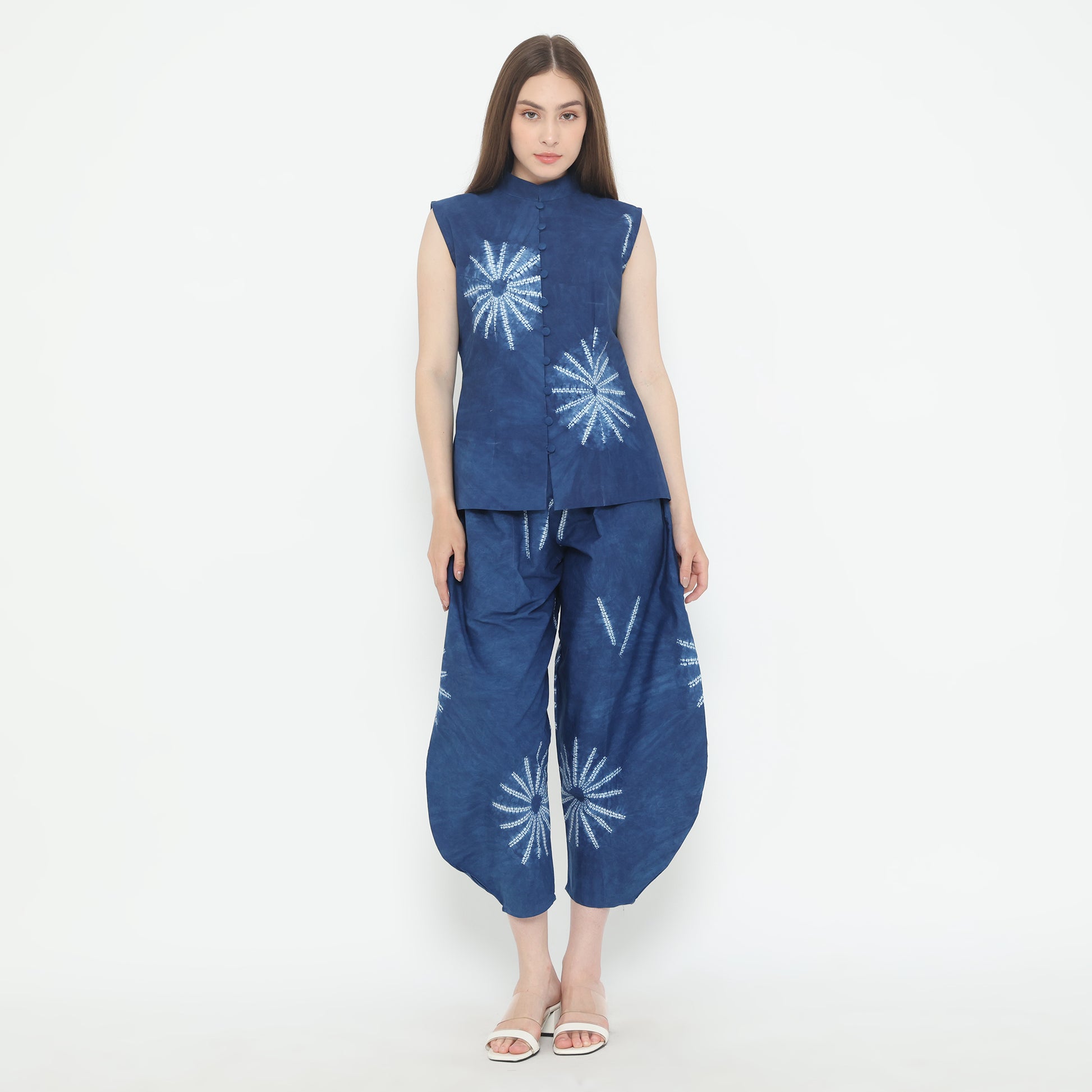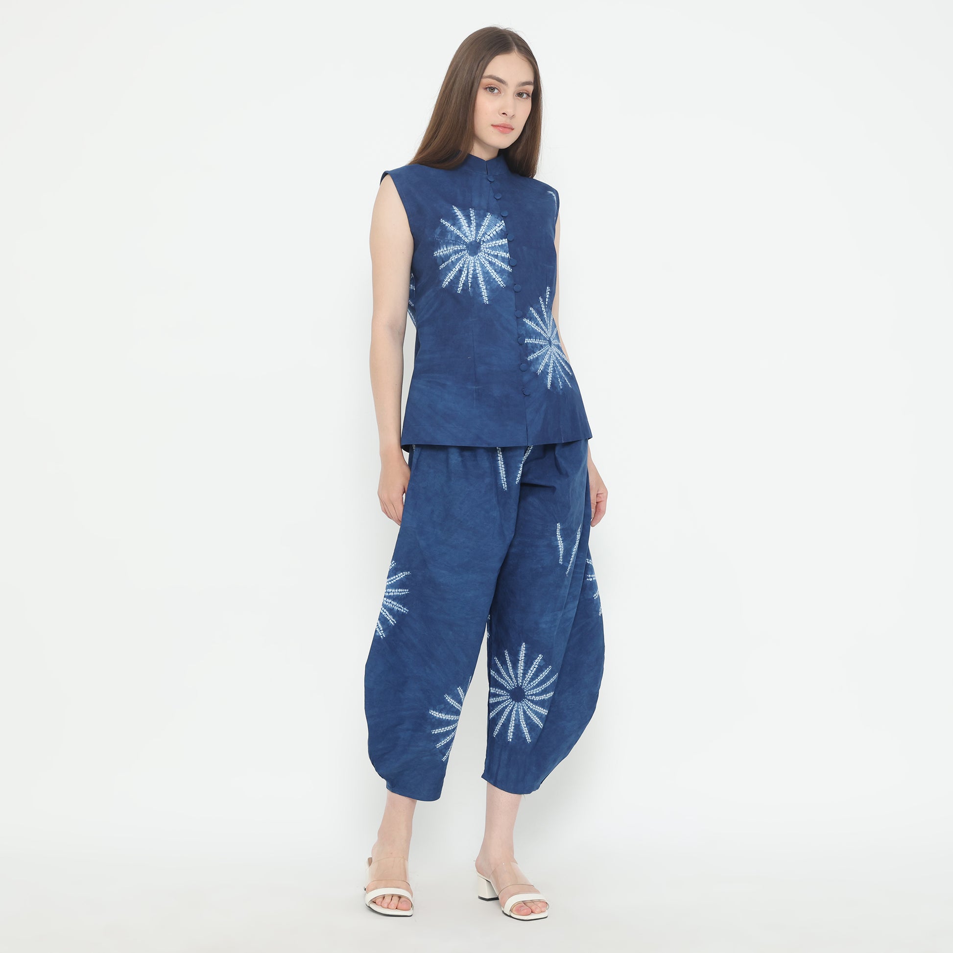 Top Asuga combining simple and minimalist styles with eye-catching patterns, from 100% natural cotton based on tie-dye techniques using natural ingredient. The blue colour made from indigofera tinctoria