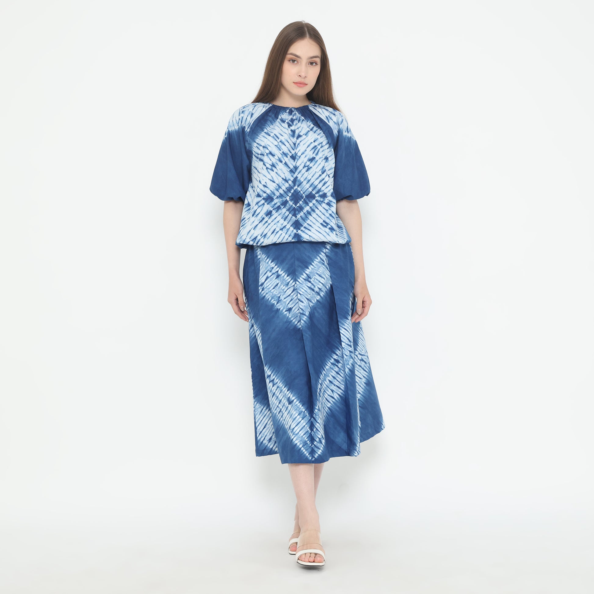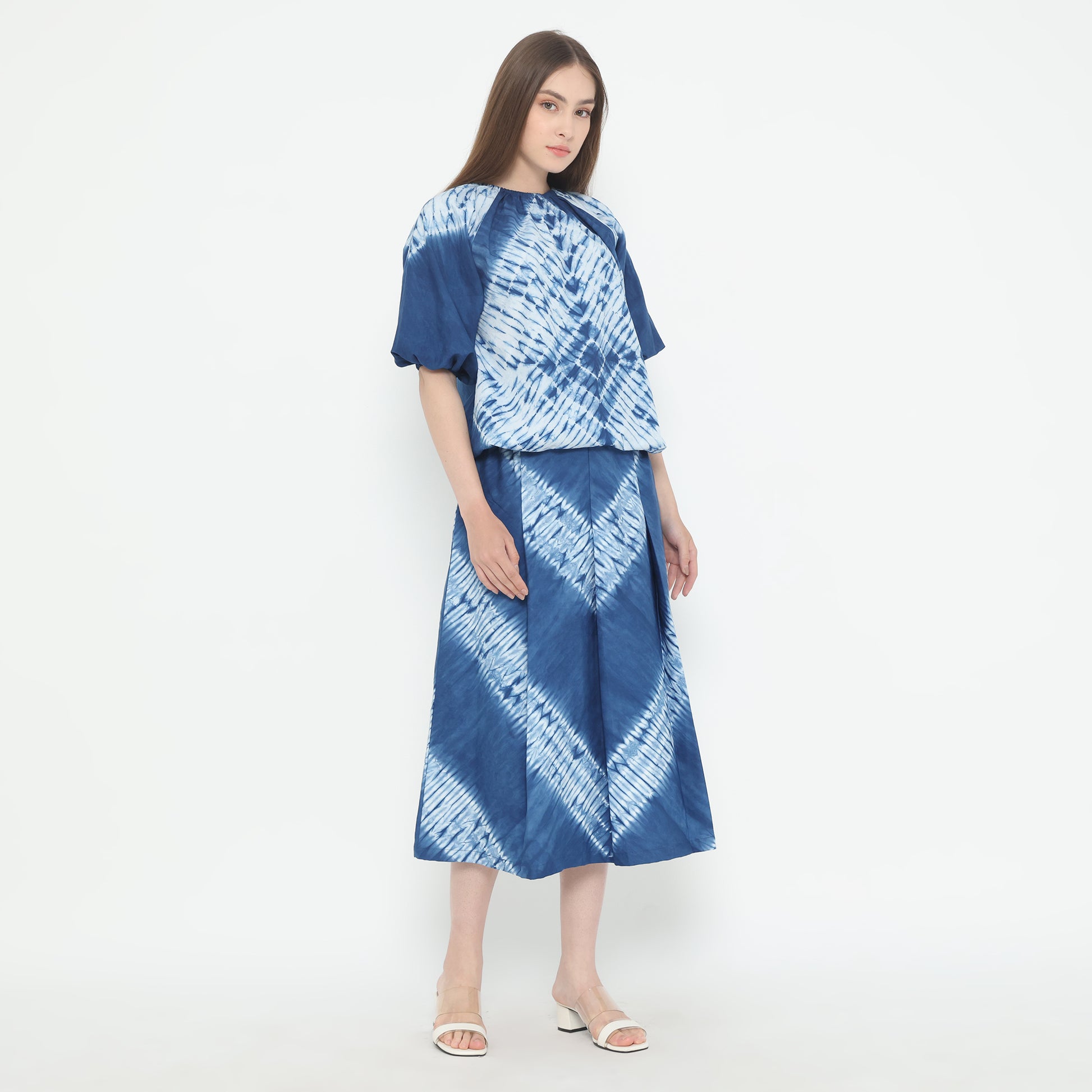 Top Hana combining simple and minimalist styles with eye-catching patterns, from 100% natural cotton based on tie-dye techniques using natural ingredient. The blue colour made from indigofera tinctoria