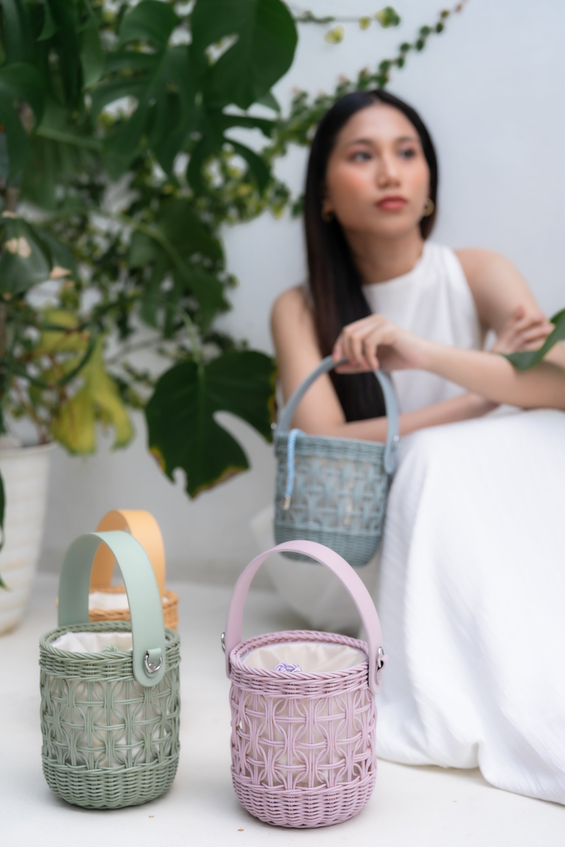 A chic bucket bag reimagined with Indonesia’s heritage. Handwoven rattan inspired by the Batik Kawung motif of Java, blended with modern design and finished in various pastel color tone. Functional, elegant, and timeless.